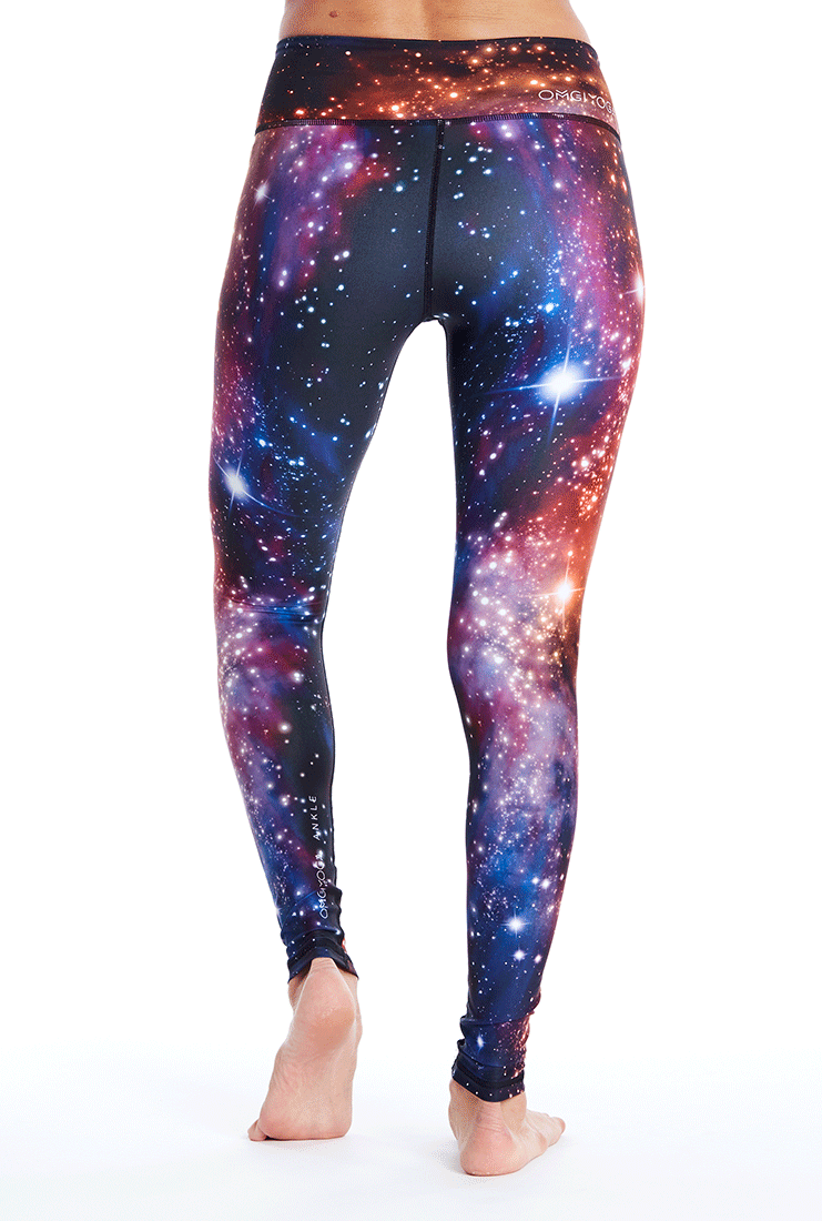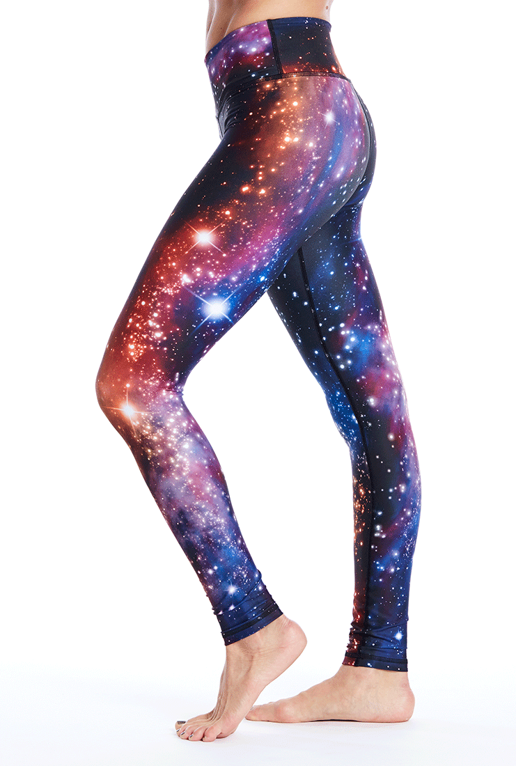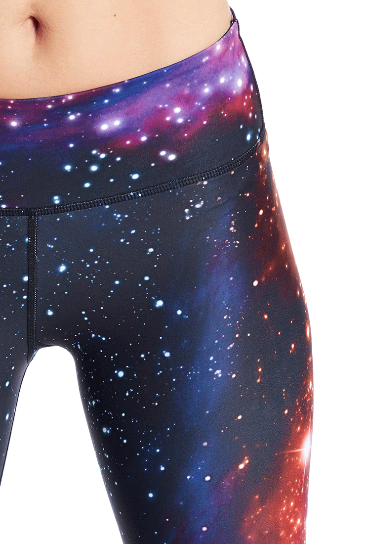 A beautiful painted nebula in a galaxy far, far away is overlaid with hints of burning stars that light up around your ankles.